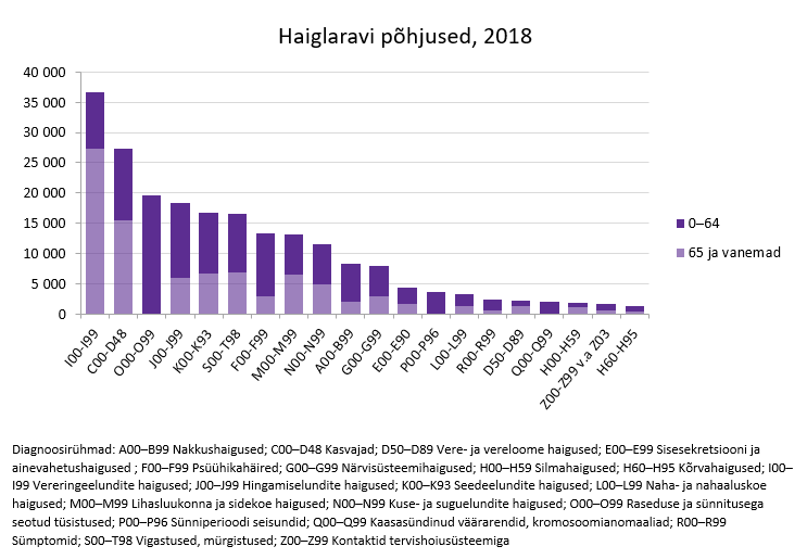 2018. aastal moodustasid haiglaravi patsientidest lapsed 13%, 15–64-aastased 45% ja 65-aastased ja vanemad 42%. Eelneva aastaga võrreldes oli vanusjaotus sama, aga viimase kümne aasta jooksul on 65-aastaste ja vanemate patsientide osatähtsus kasvanud 8%. Haiglaravi peamisteks põhjusteks on sarnaselt varasemaga vereringeelundite haigused, neist patsientidest kolmveerandi moodustasid 65-aastased ja vanemad.